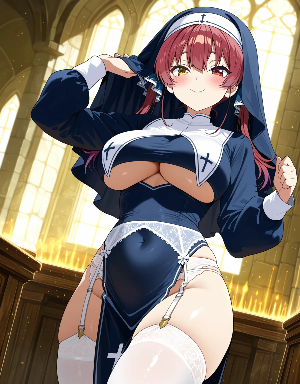 【宝鐘マリンエロ画像】砂浜で水着の宝鐘マリンがニヤニヤエッチ!夏でハメを外して気持ちよくなっちゃう!